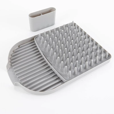 - Multi-Sectional Organization: Featuring three sections, including a dish drying rack with a drainboard and holders for flatware, cooking tools, and other kitchen accessories, this rack keeps your kitchen essentials neatly organized and easily accessible.