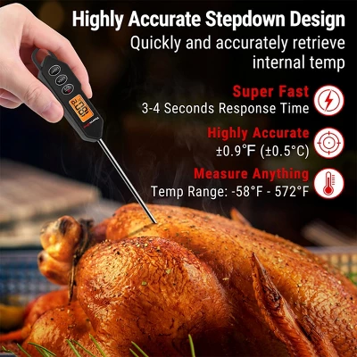 Getting your meat cooked just right everytime is possible. Let the ThermoPro TP01HW do that for you. The TP01HW instant-read thermometer will give you an accurate temperature in the matter of a few seconds every single time. A must have tool for experienced and inexperienced cooks alike.