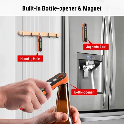 - Built-in Bottle-opener & Magnet: Featuring a built-in magnet to easily attach to the refrigerator or the side of your BBQ; The hanging hole not only allows the digital thermometer for cooking to hang from a hook, but also helps you open your favorite beverage
