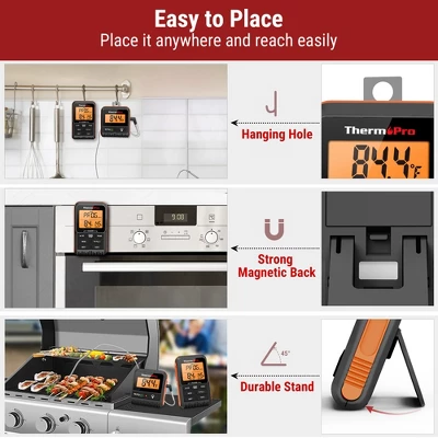- 500FT Remote Monitoring: Bypass the constraints of a Bluetooth meat thermometer, which only has a 100ft range. The ThermoPro TP806BW wireless cooking thermometer delivers a class-leading, stable connection up to 500ft, ensuring you can monitor your cooking from virtually anywhere.