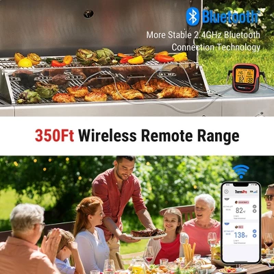 - Long-Range Bluetooth: The Thermopro wireless meat thermometer uses advanced Bluetooth technology to provide a stable connection up to 350ft away. Use the multifunctional Thermopro app to monitor your food or grill/smoker temperature from a distance.