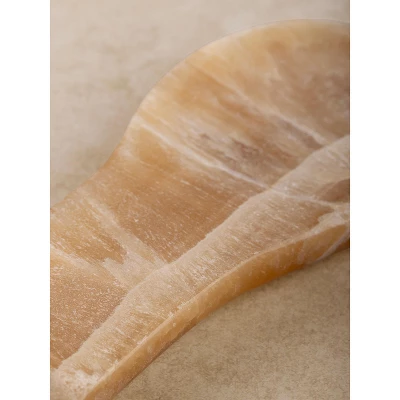 Enhance your kitchen decor with the Tunisia Spoon Rest, expertly crafted from semi-precious orange onyx marble that radiates natural elegance. Handcrafted in India, this artful design reflects the meticulous care of skilled artisans, ensuring each spoon rest is uniquely beautiful.Perfect for holding your culinary essentials or as a decorative accent, this spoon rest adds character to any kitchen decor. Elevate your culinary experience with this exclusive handcrafted piece and bring a splash of artistry to your space.