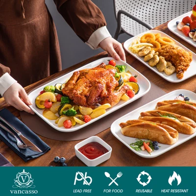 [(Safe Material & Exquisite workmanship)] Handmade-inspired Porcelain Stoneware dinnerware set is non-lead and non-cadmium, won’t absorb odor or bacteria with the food, ensure your healthy diet. Strong, Long-Lasting ceramic are fired at a high temperature to maximize the strength of the ceramic. Goes safe in Freezer, Dishwasher and Microwave [(Unique & Trend Design)] Each plate and bowl features handmade-inspired design so that these vibrant plates add a stylistic touch and brighten up your life [(Stackable & Easy to Clean)] vancasso plates and bowls’ bottom design make them easily stack on each other, you can stack plate set together to save cupboard space without toppling risk. Easy to clean, you could wash them with soap and hot water or place them into your dishwasher, free your handsProduct Highlights
