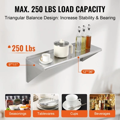Spacious Size: Our stainless steel floating shelf gives you ample space to express your life. Max. Loading capacity is 250 LBS. In addition, the unique triangle support design ensures the stability of the whole shelf.
