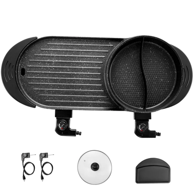 Non-stick & Easy to Clean: With a non-stick coating, our hotpot pot electric with grill minimizes smoke and oil. Meanwhile, the raised grooves reduce sticking. Enjoy easy food flipping and effortless cleaning