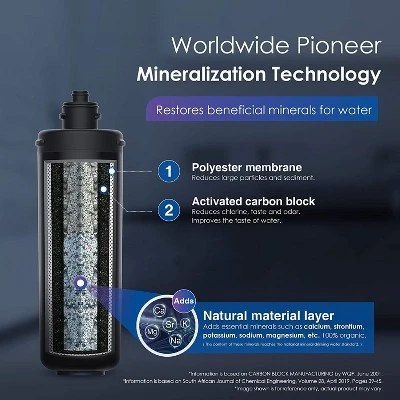 - 【Service life & easy installation】 Each mineral water filter has a maximum service life of 8,000 gallons, when used with municipal water.[2] With innovative push-to-connect fittings, installation takes less than 3 minutes. The twist-and-lock design helps you replace the filter in 3 seconds without any tools. Additionally, this undersink water filtration filter should be connected only to a cold water supply.