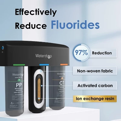 - [More filters, better taste] This under sink filter system comes with 3 filters and can realize 8-stage deep filtration to reduce PFAS, PFOA/PFOS, residual chlorine, fluorides, heavy metals, silt, rust, cyst, etc. Its KDF materials can effectively reduce heavy metals. Its fluoride reduction resin reduces 97% of fluorides. This filter has passed IAPMO certification to reduce residual chlorine and improve taste, thereby ensuring every drop is pure and healthy. It also can retain minerals, but cannot reduce TDS.