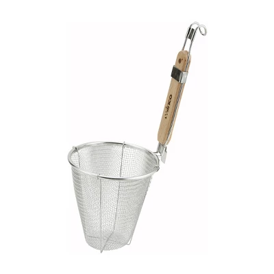 Perfect for straining pasta, the Winco single mesh strainer features a deep pocket with meticulously placed perforations which allows fast and thorough draining of liquids. This strainer provides a comfortable grip while keeping your hands safely away from heat. Thanks to its stainless steel construction, this single mesh strainer won’t warp even under high temperatures. There is also a hanging hook for convenient storage.