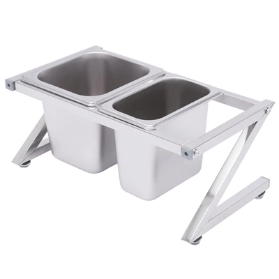 This stylish and sturdy countertop spice rack, crafted from rust-resistant stainless steel, is the perfect solution for organizing your kitchen. It effectively uses vertical space to keep your spices neat and accessible, preventing spills and creating a comfortable cooking environment. The telescoping shelf is adjustable to fit your needs, and the set includes large-capacity pans with lids and ladles to keep seasonings fresh and hygienic. Easy to install, clean, and store, this versatile rack is ideal for both home and commercial kitchens.