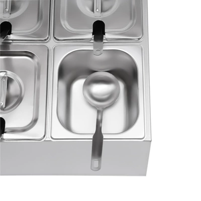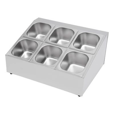 Tired of a cluttered kitchen? This premium stainless steel spice rack is your perfect solution for achieving a tidy and organized space. Featuring a large capacity with six removable food pans, lids, and spoons, it keeps your seasonings neatly categorized and easily accessible. Its modern silver design and inclined structure not only add a touch of elegance to your countertop but also ensure stability and effortless use, making it an indispensable helper for any kitchen.