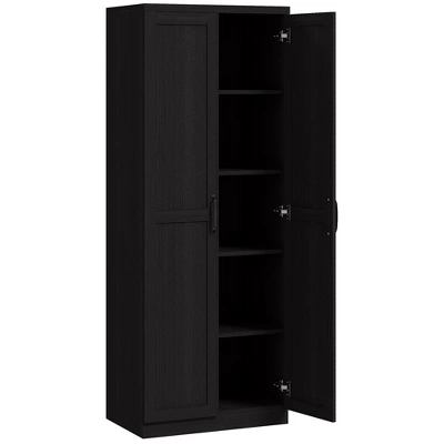 Introduce order and elegance to your kitchen with the Yukimo 63″ Cinnamon Black Wood Grain Kitchen Pantry. This freestanding cabinet boasts a sleek design that complements a variety of home styles while providing substantial storage with its 5-tier shelving system. The two adjustable shelves within allow for versatile storage solutions, whether you need to accommodate tall pitchers or wide pasta containers. The pantry’s safety features, such as the anti-tipping strap, prioritize your family’s well-being, and its sturdy construction ensures long-lasting use. With its contemporary design and practical features, the Yukimo Kitchen Pantry is not just a storage solution but also a decorative addition to your home. Assembly required.